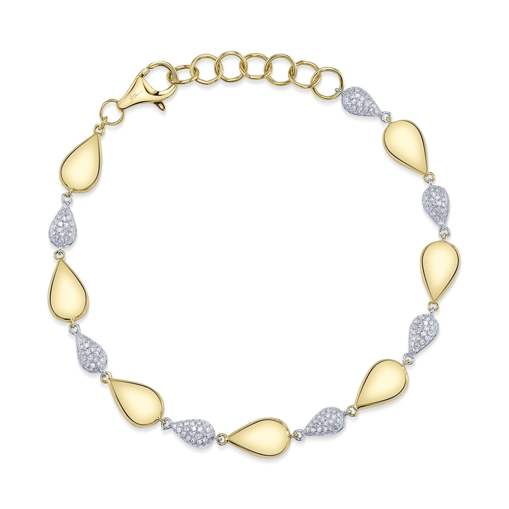 Shy Creation Fine Jewelry 14K Yellow and White Gold Alternating Pear Diamond and High-Polished Stone Bracelet