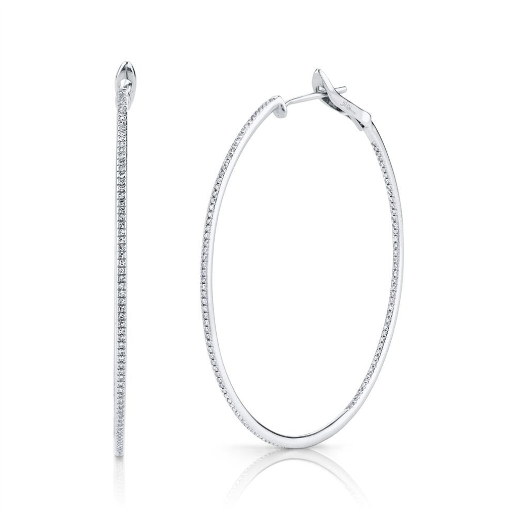 Shy 14K White Gold Long Inside Outside Diamond Hoop Earrings.