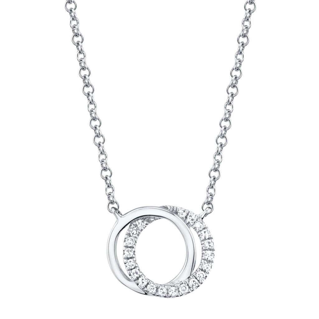 Shy 14Kw Diamond Interlocking Circle Pendant Necklace 20Rds 0.07Cts 18".