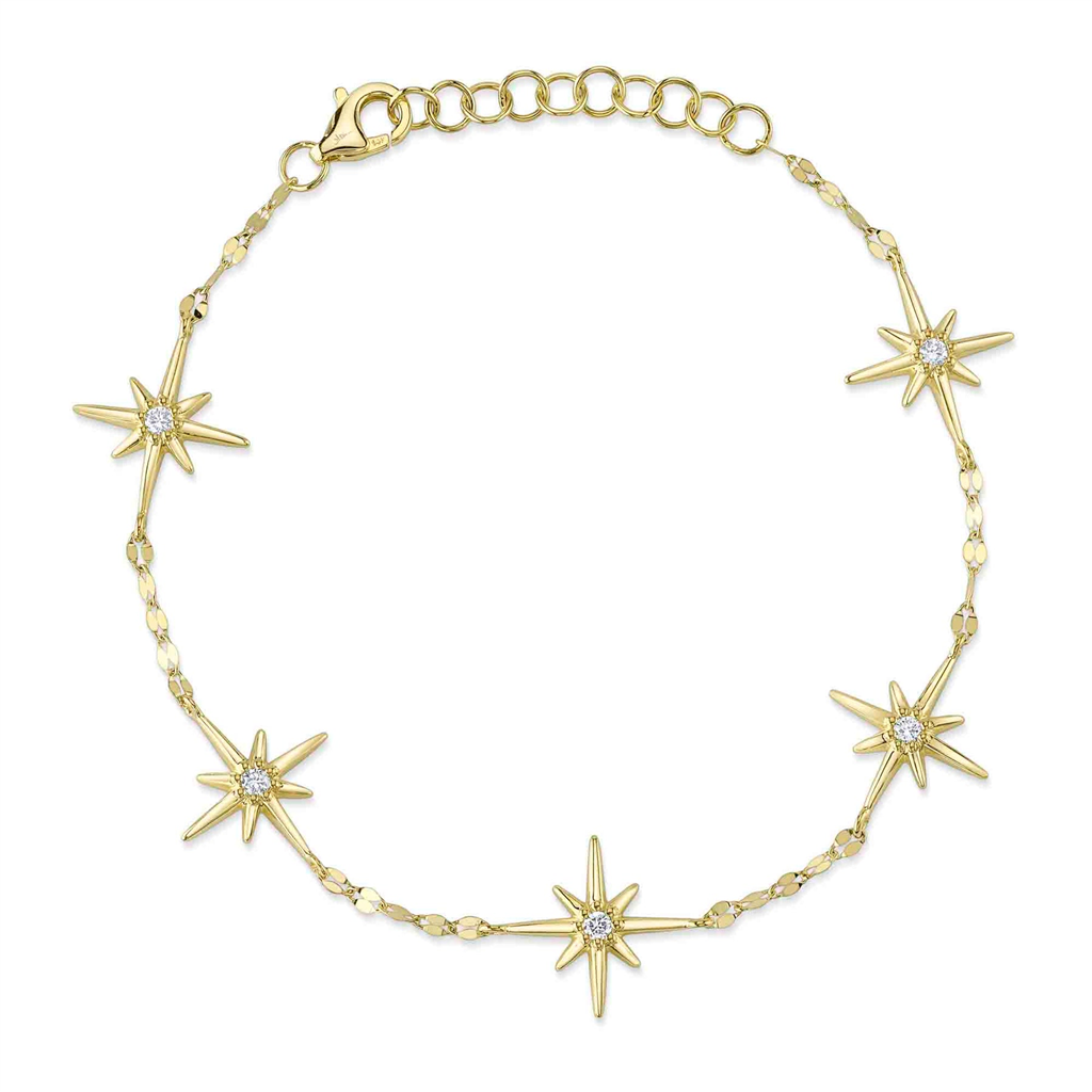 Shy 14k Yellow Gold 5 Station Diamond North Star Bracele.