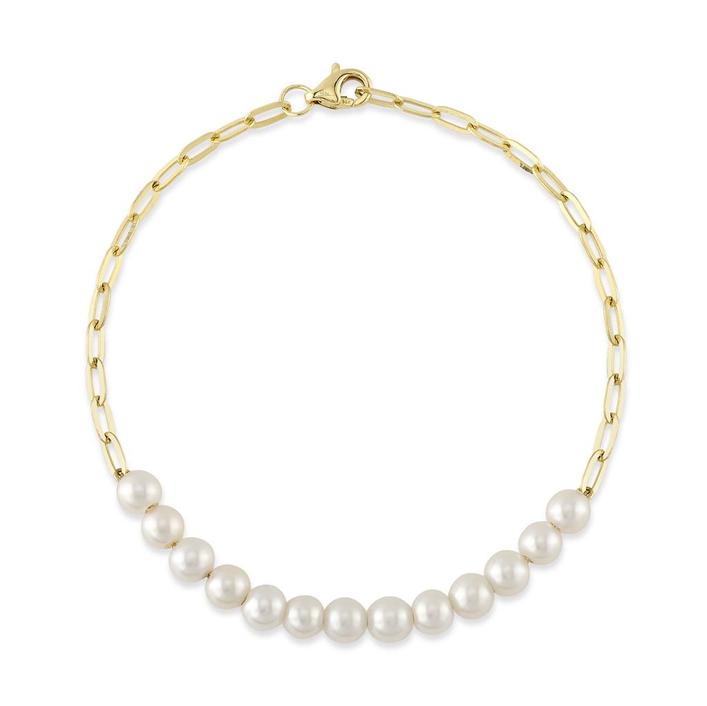 14K Yellow Gold, 13 Cultured Pearls, Paperclip Link Bracelet. Bracelet Length 7".