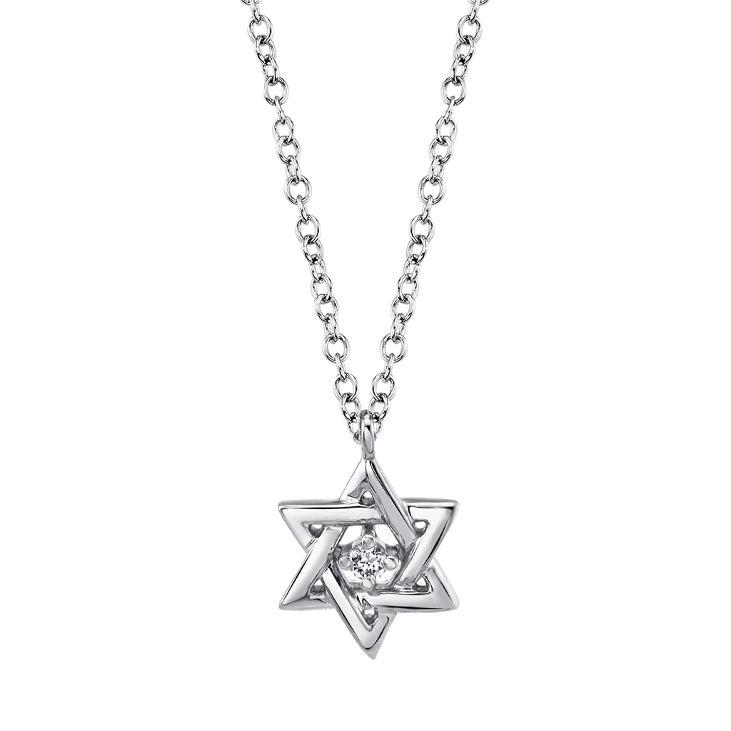 Shy 14K White Gold Diamond Star Of David Pendant Necklace With Adjustable Chain.