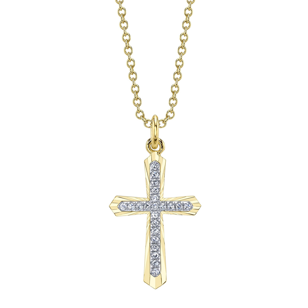 Shy Creation Fine Jewelry 14K Yellow Gold and White Gold Two Tone Diamond Flared Cross Pendant Necklace